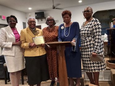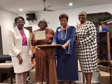 Photo 3. VP Ethelene McCullough, VP Cynthia Jackson, President Cleo Crowder, Honoree Sister Shirley Ingram, Mt. Olive Baptist Church, VP Allison Williams